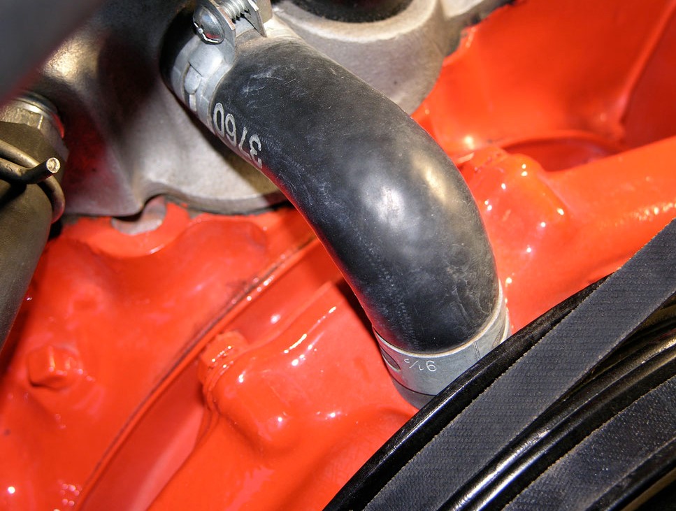 ホースやホースクランプの様な細かな部分にも当時のパーツを使用。本当に細部まで隙のないディテーリングが、カーショーでの高評価に繋がっている。