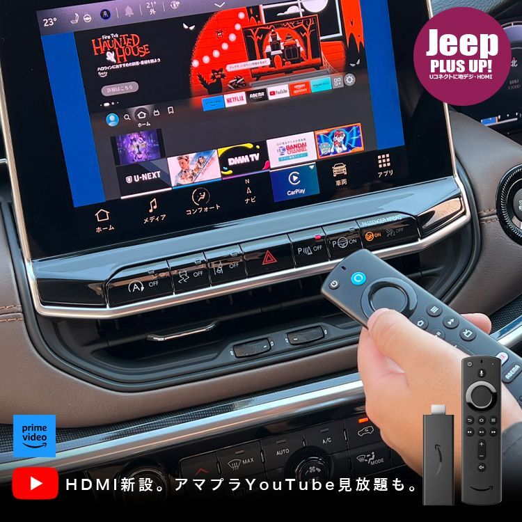 ・CarPlayに接続。ファイヤーTVスティックなどのストリーミングデバイスを介してYouTubeやアマプラを視聴。