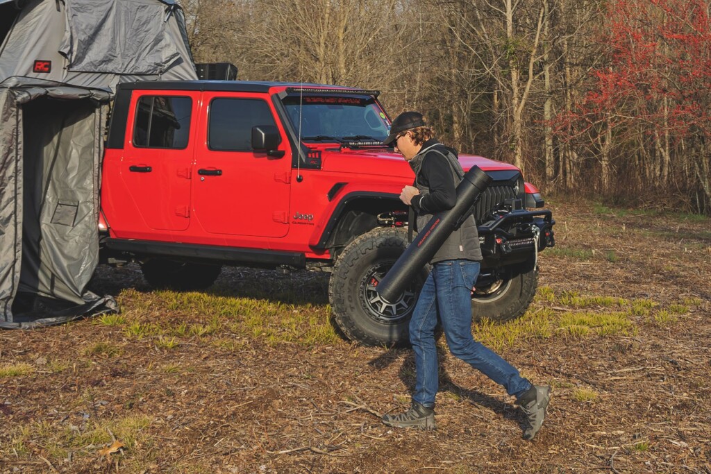 付属の三脚は高さ調整可能で、最大**約2.4m(8フィート)**まで伸長。さらに滑り止め付きで、さまざまな地形でも安定した設置が可能です。